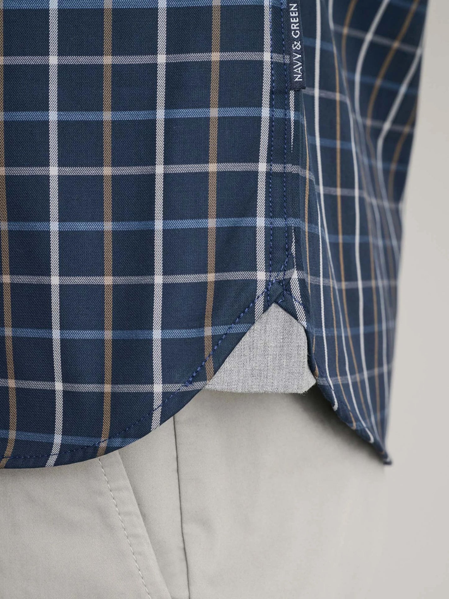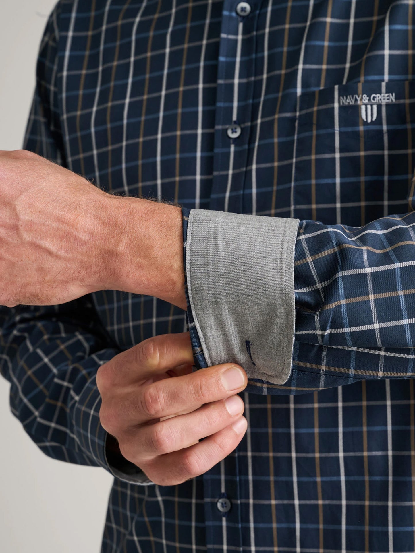 Ανδρικό πουκάμισο Navy & Green, καρό. Rex γιακά. Μακρυμάνικο. Τσεπάκι με κεντημένο λογότυπο στο στήθος. Κανονική εφαρμογή.