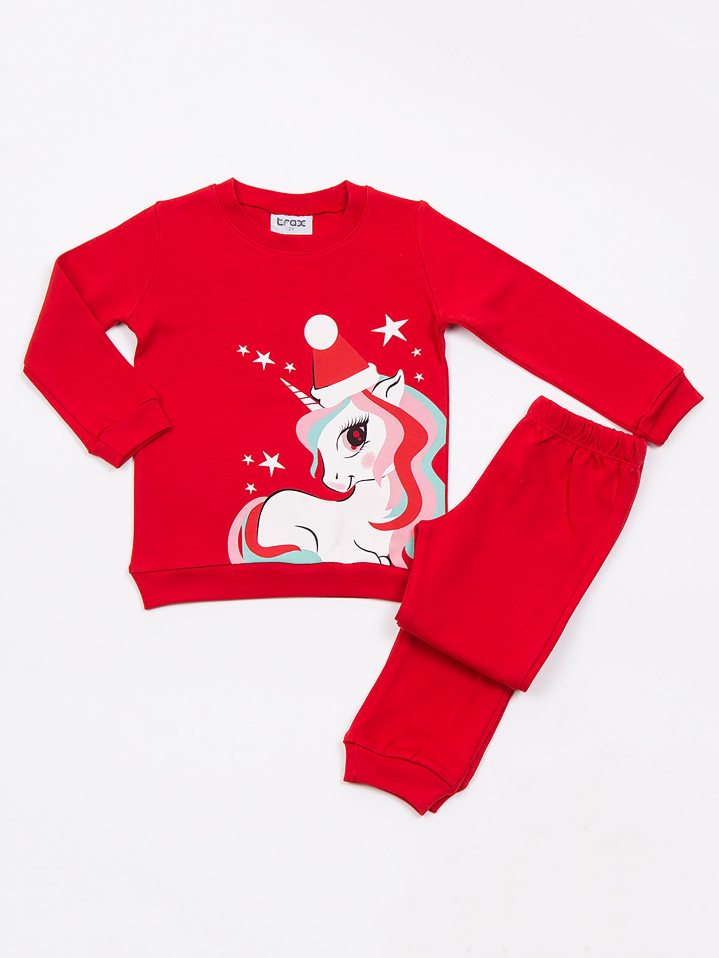 Παιδική πιτζάμα Trax, βαμβακερή. Μπλούζα σταμπωτή με christmas unicron τύπωμα. Λαιμόκοψη. Μακρυμάνικη. Παντελόνι μακρύ, μονόχρωμο. Ελληνικής κατασκευής.
